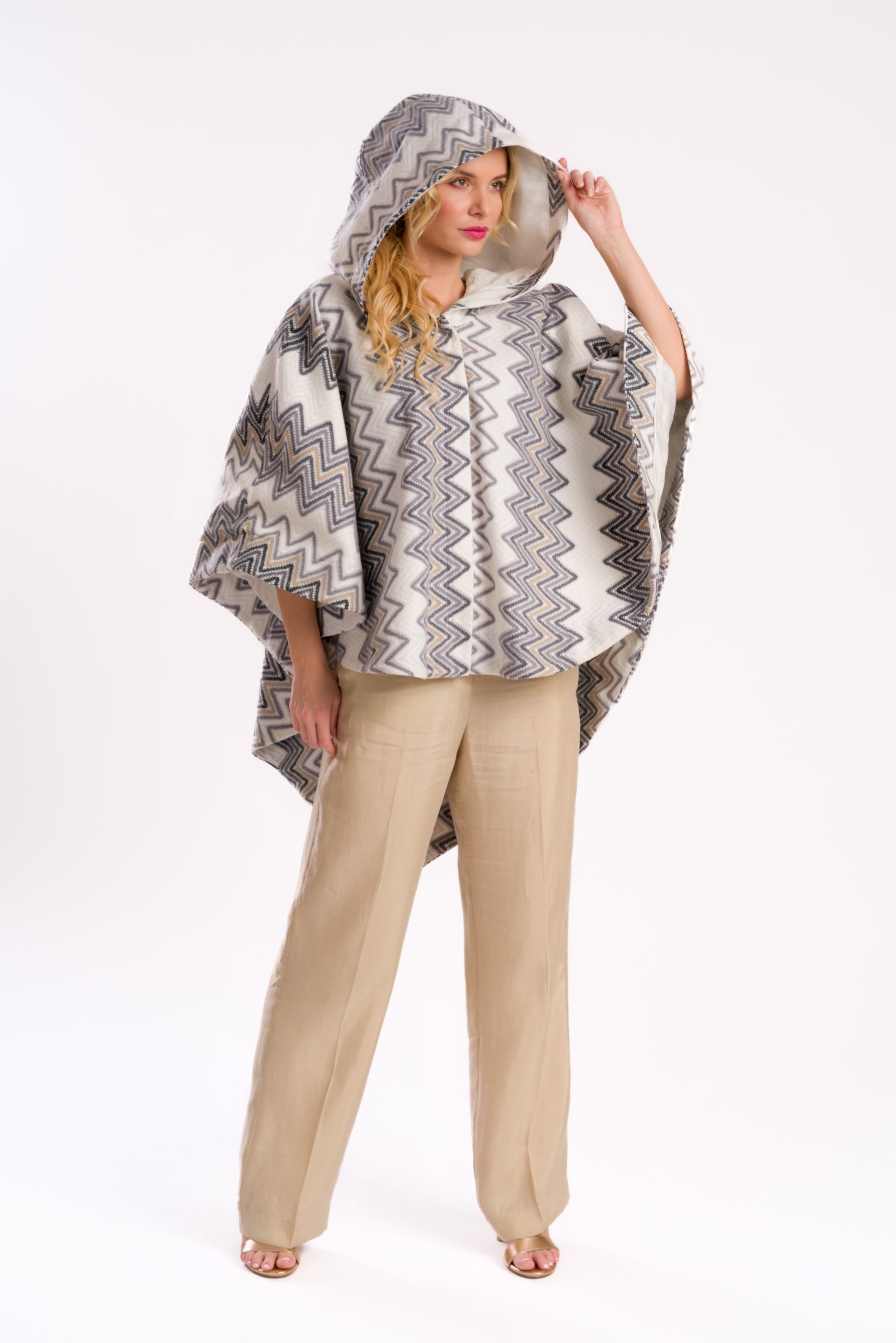 Chevron Pattern Hooded Poncho/Cape