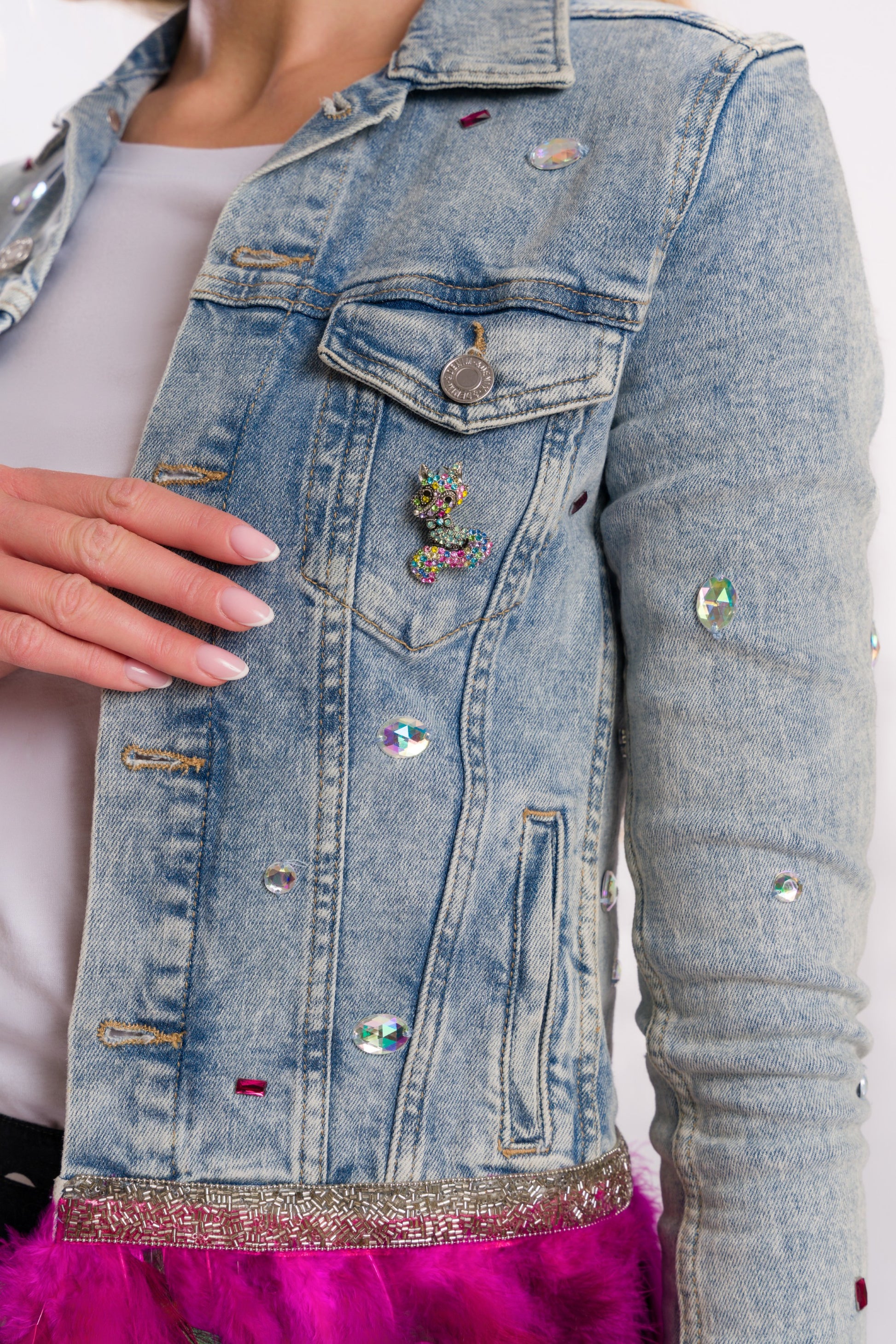 Pink hair girl denim jacket #recycled