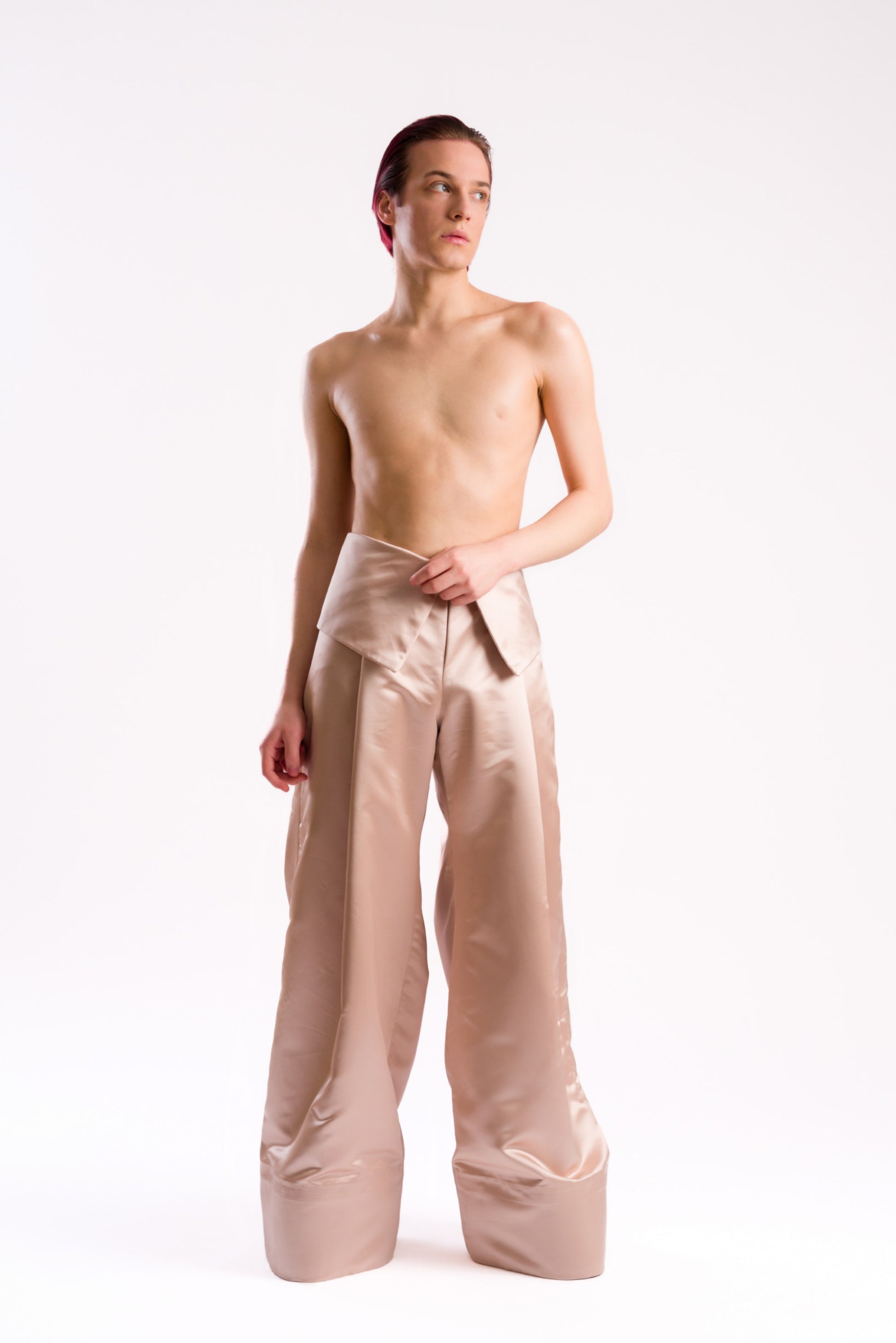 • Style: High-waisted, wide-leg culottes/palazzo pants with a folded hem.